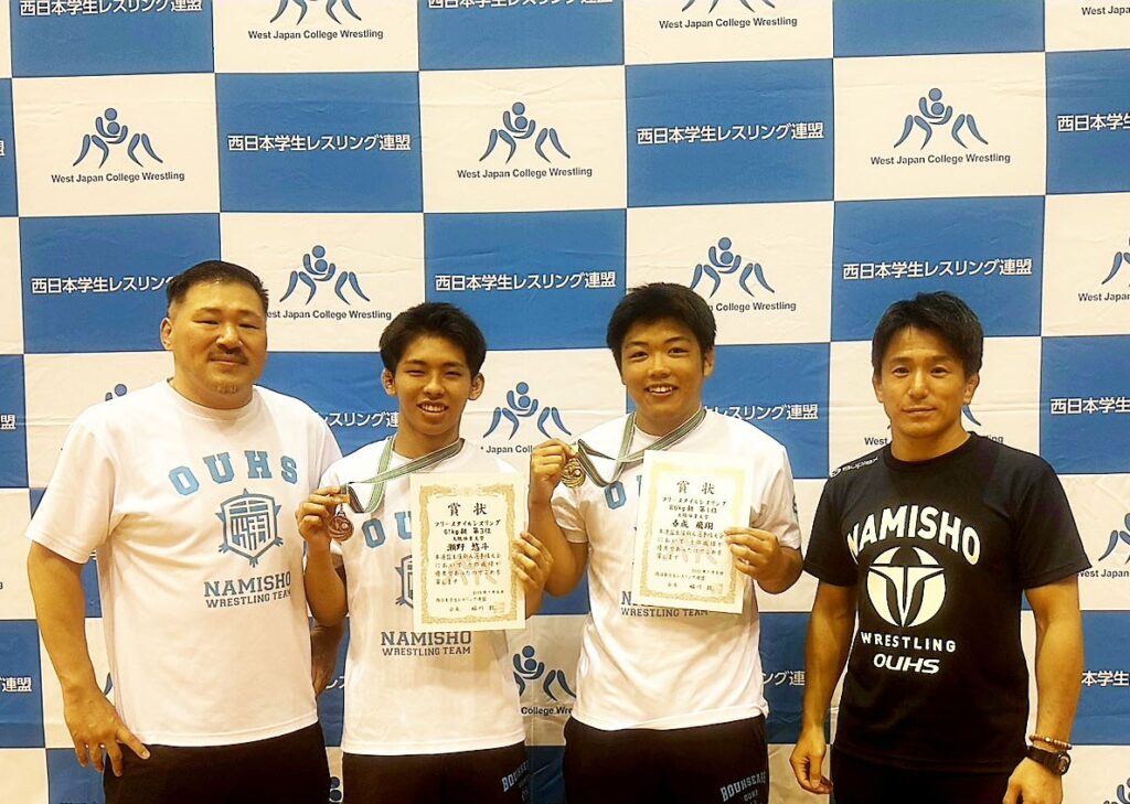 2025年7月5〜6日に開催された西日本学生レスリング新人選手権大会で高塚高校出身、大阪体育大学1年の春成飛翔(はるなり つばさ)がグレコローマンスタイル87kg級・フリースタイル86kg級でW優勝しました。同大学としては1980年以来45年振りの両スタイル優勝となります。